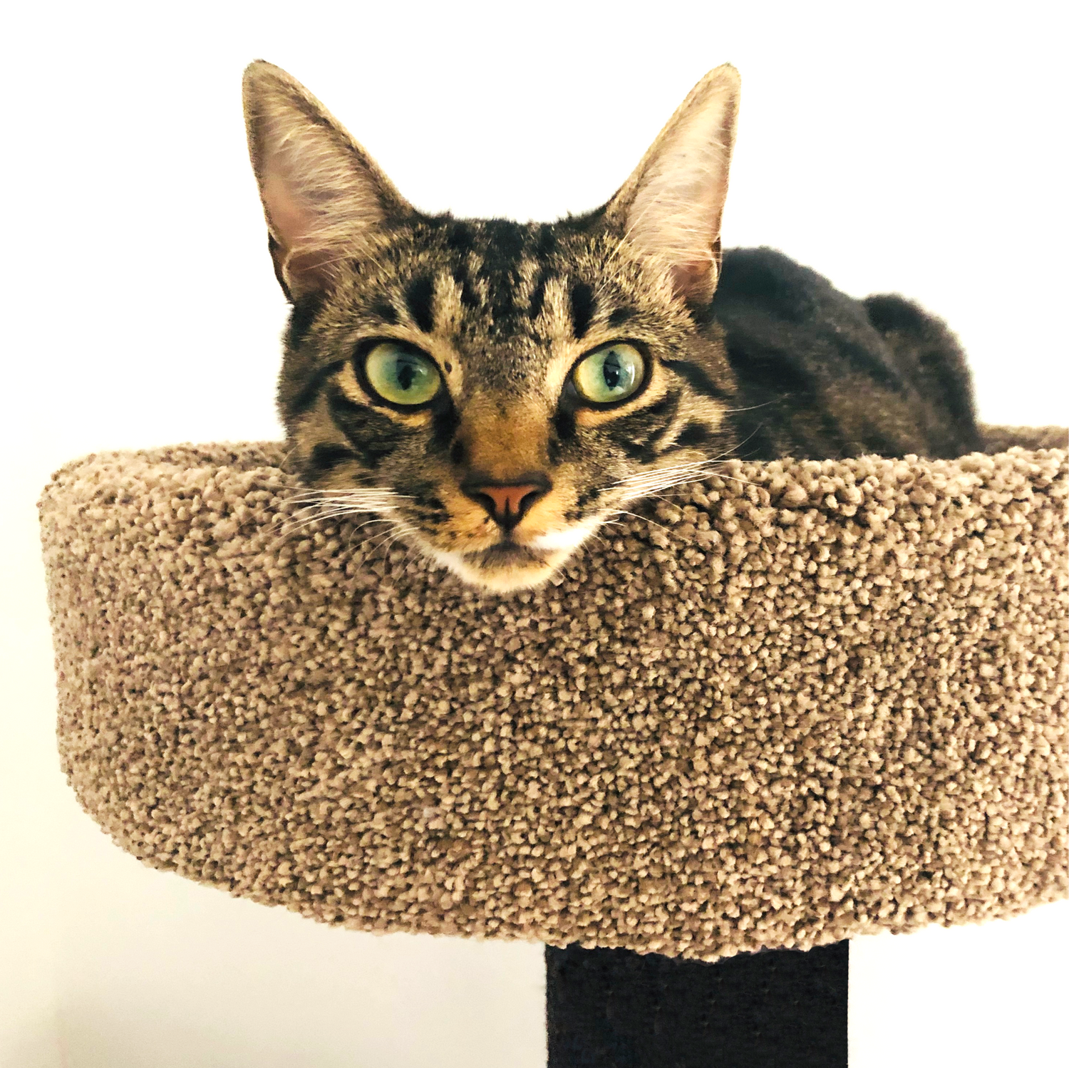 Gus is designed with a dual-column, dual platform format to create space for larger cats and kittens who like to spread out.